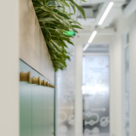 У офісі Carlsberg Ukraine ми реалізували дві черги озеленення з інтегрованими нішами та точковими акцентами. У просторі висаджено 656 живих рослин, які формують цілісну атмосферу та підкреслюють сучасний характер інтер’єру.
